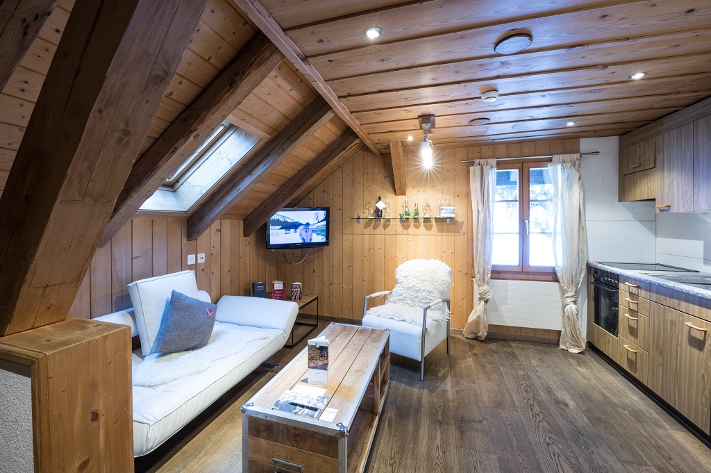 Die doppelstöckige Wohnung (64 m2) eignet sich mit zwei getrennten Schlafzimmern (je ein 140 x 200 cm Bett) sowie jeweils ein Palettensofa für Familien oder bis zu 6 Personen. In der unteren Etage befindet sich ein heimeliges Wohnzimmer mit einer offenen Teeküche. Das grosszügige Badezimmer verfügt über eine Badewanne. Die Wohnung ist ausgestattet mit Haartrockner, Telefon, Radio/TV und Internetzugang.