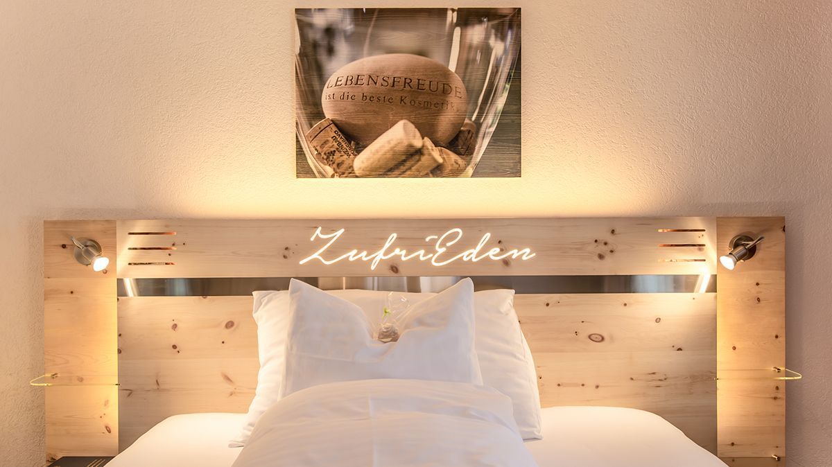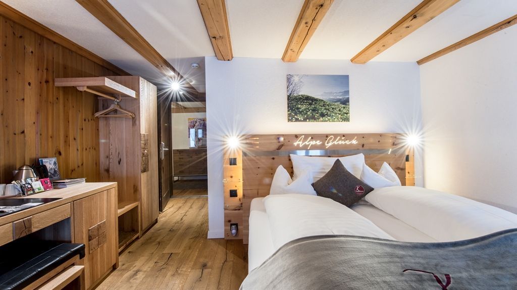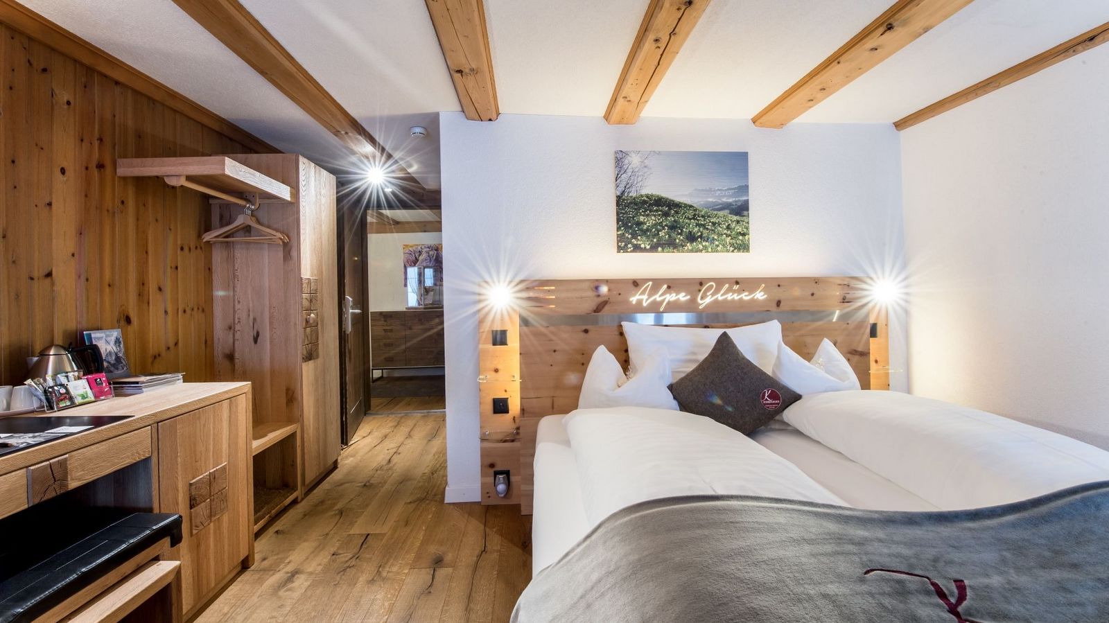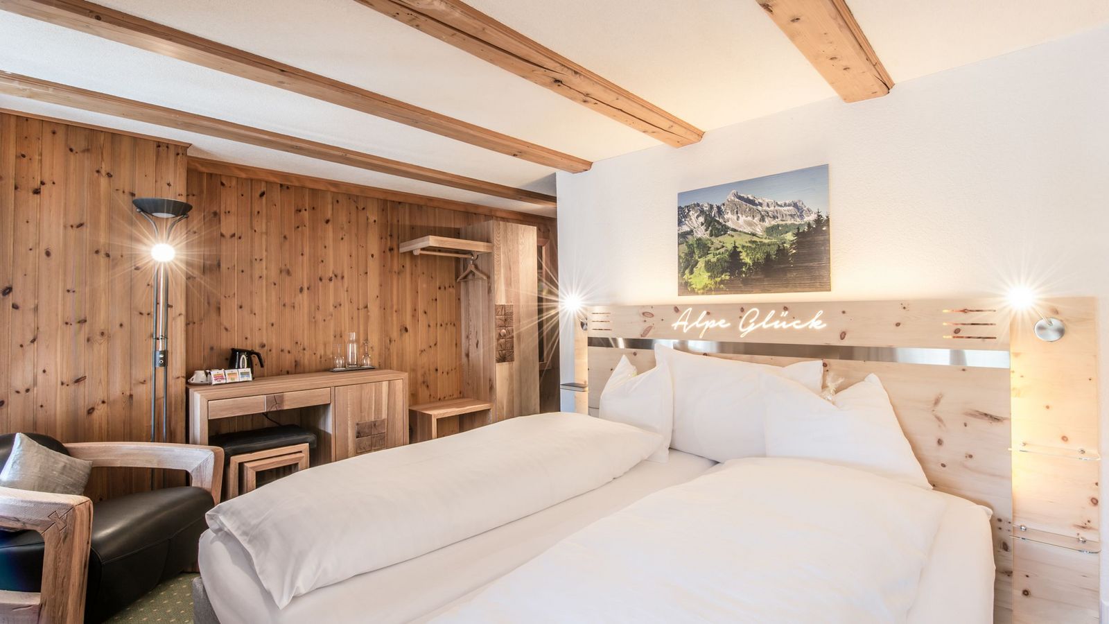 Unsere heimeligen Arvenzimmer (ca. 16 m2) mit einer Arven-Bettrückwand, Arvenkissen und Arvenduftsäulen sorgen, dank dem Arvenholz, für einen tieferen und entspannteren Schlaf.