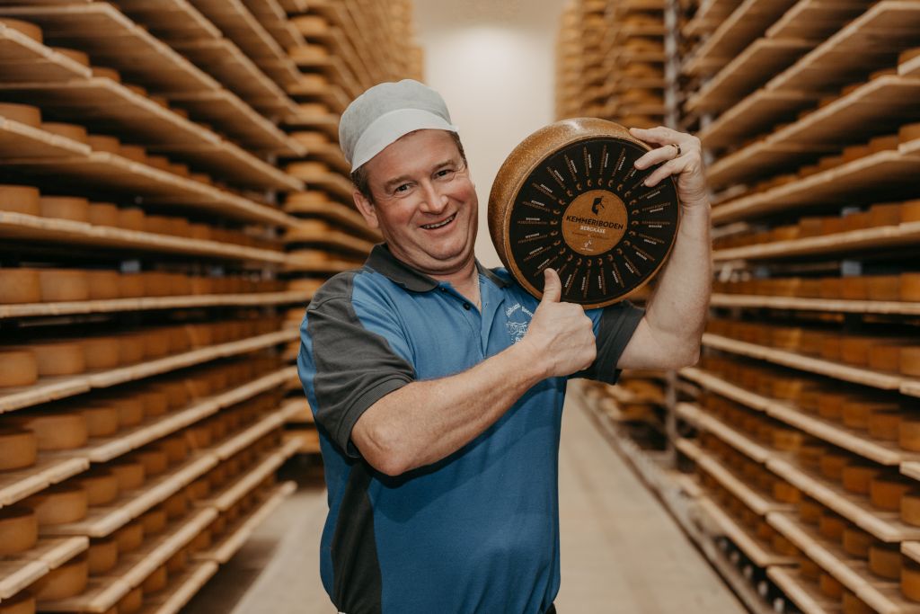 Diverse Käsesorten, wie beispielsweise den Kemmeriboden Bergkäse, Schangnauer Baumnusskäse und den Hohgantkäse, beziehen wir von Susanne und Markus Aegeter, den Besitzern der Hohgant Käserei.