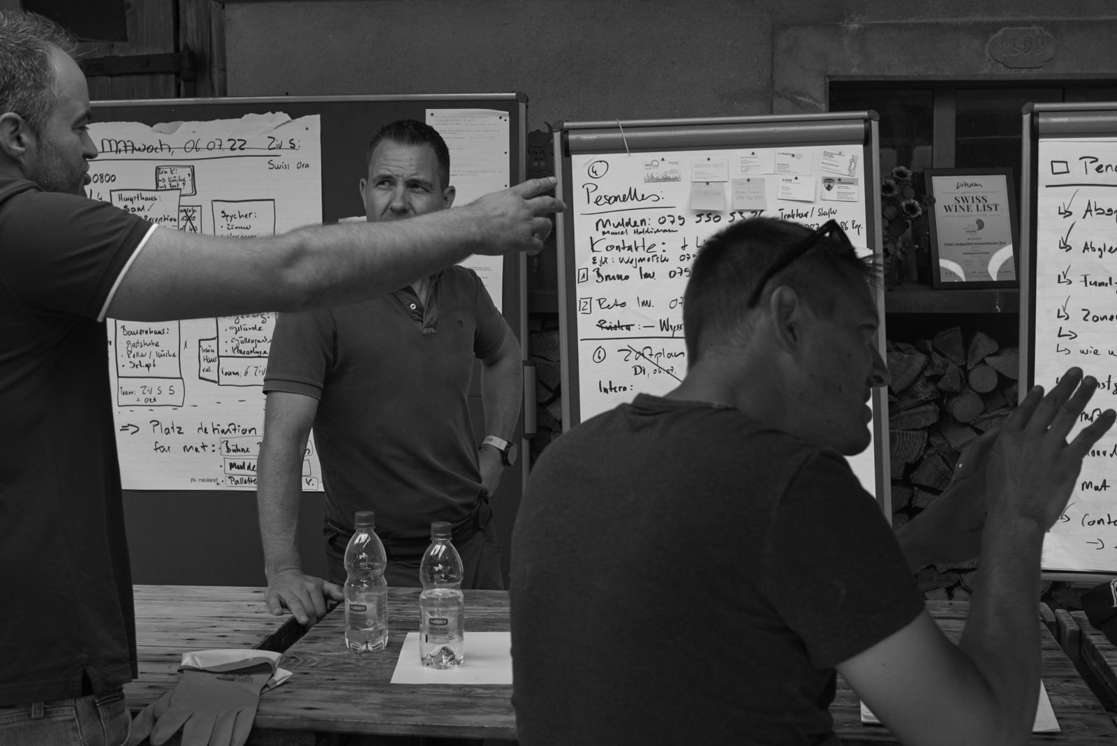 Bruno, der beim Militär arbeitet, koordinierte den Zivilschutz und die Nothilfe nach dem Hochwasser. Er entlastete Reto, der sich dann auf die Mitarbeiter, die Versicherungen und den Aufbau des Bauteams konzentrieren konnte.
