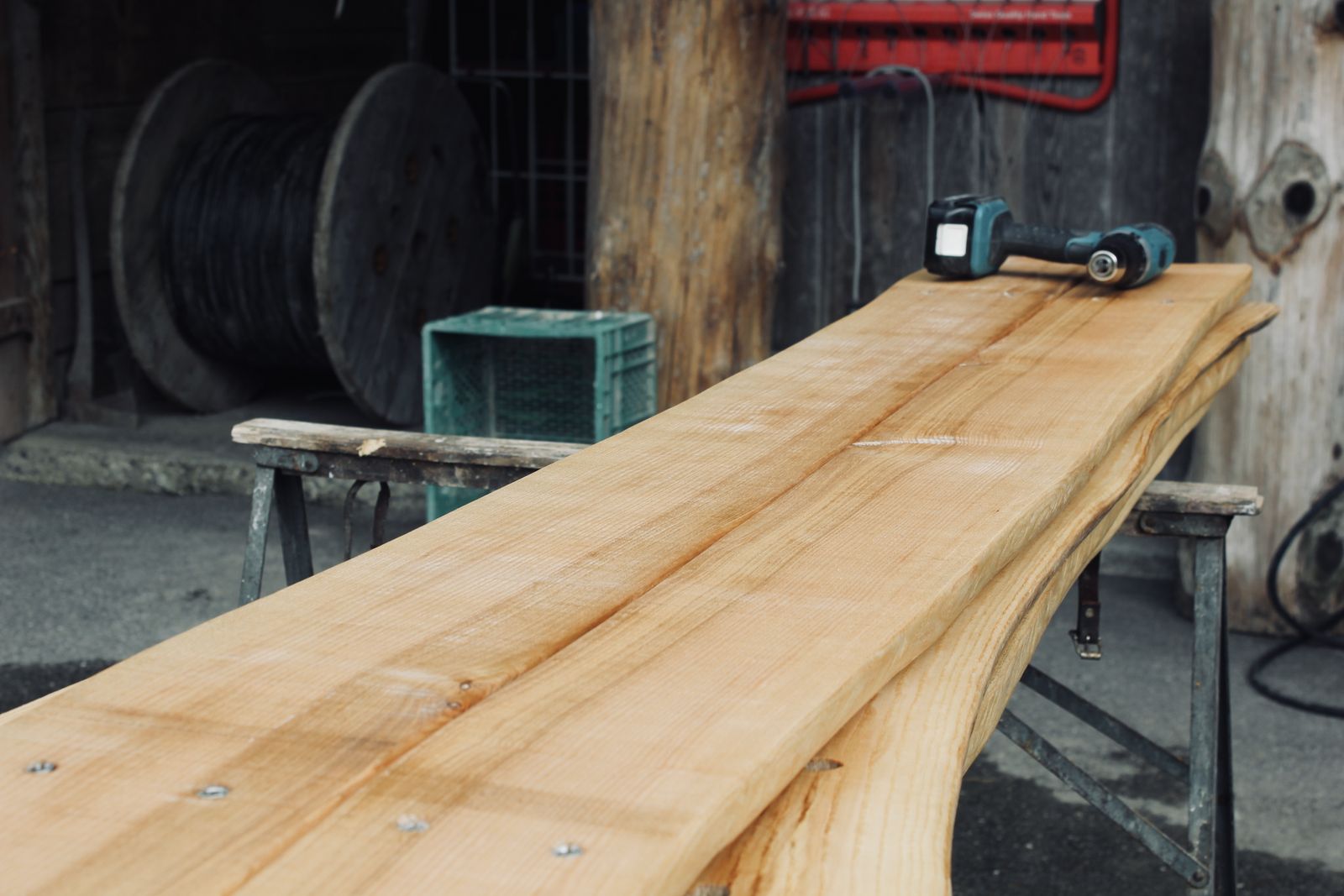 Vor vielen Jahren, bauten die Ururgrosseltern des heutigen Gastgebers mit diesen Holzbrettern unseren Spycher. Heute geben wir diesen historischen Brettern eine neue Aufgabe an unserem Unwetter Tisch und schreiben damit die Kemmeriboden Geschichte 2.0.