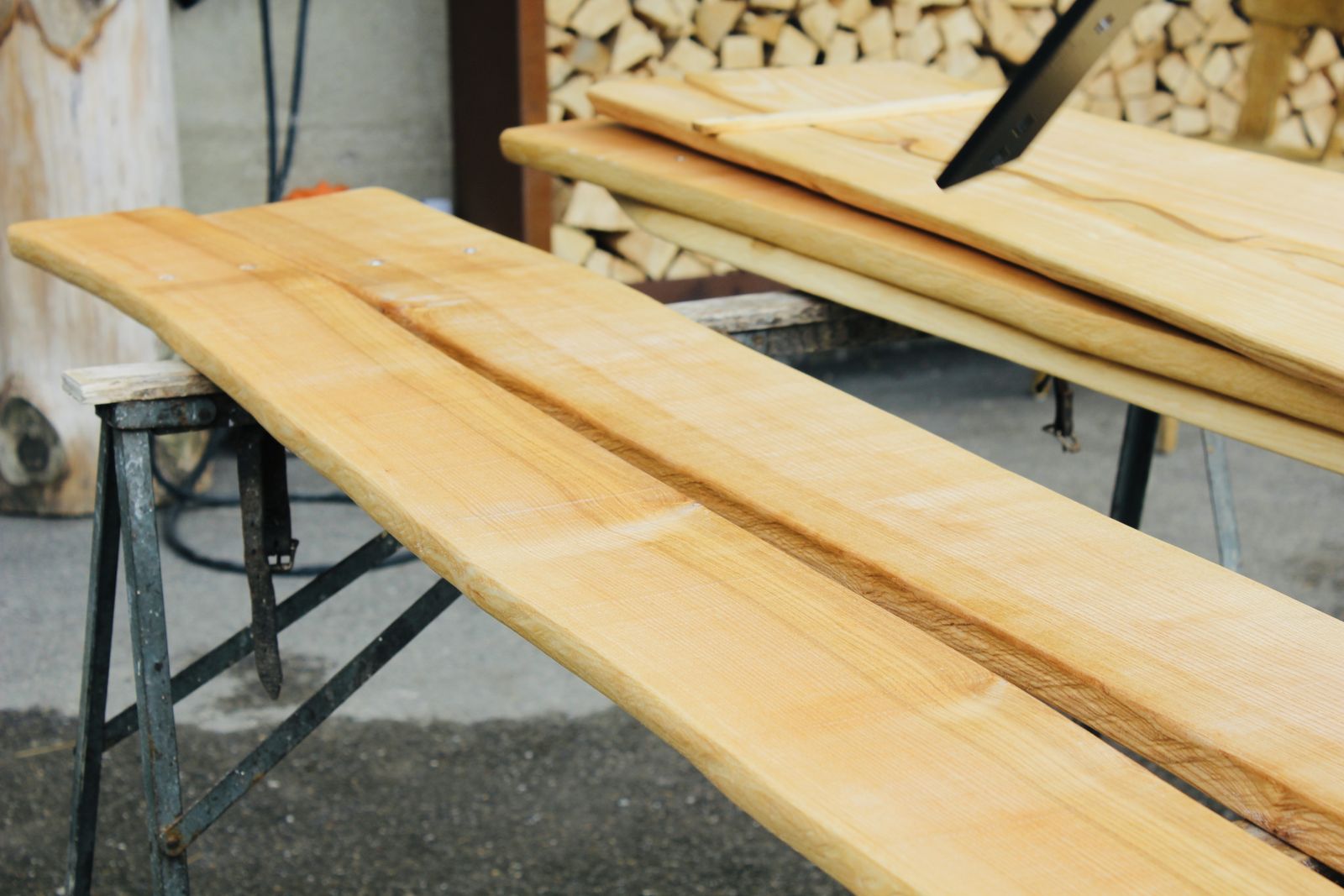 Wenn diese Holzbretter sprechen könnten, würden sie uns Kemmeriboden-Geschichte erzählen. Das leise Flüstern des Holzes erzählt uns Stefan von der Martin Kunz Schreinerei.