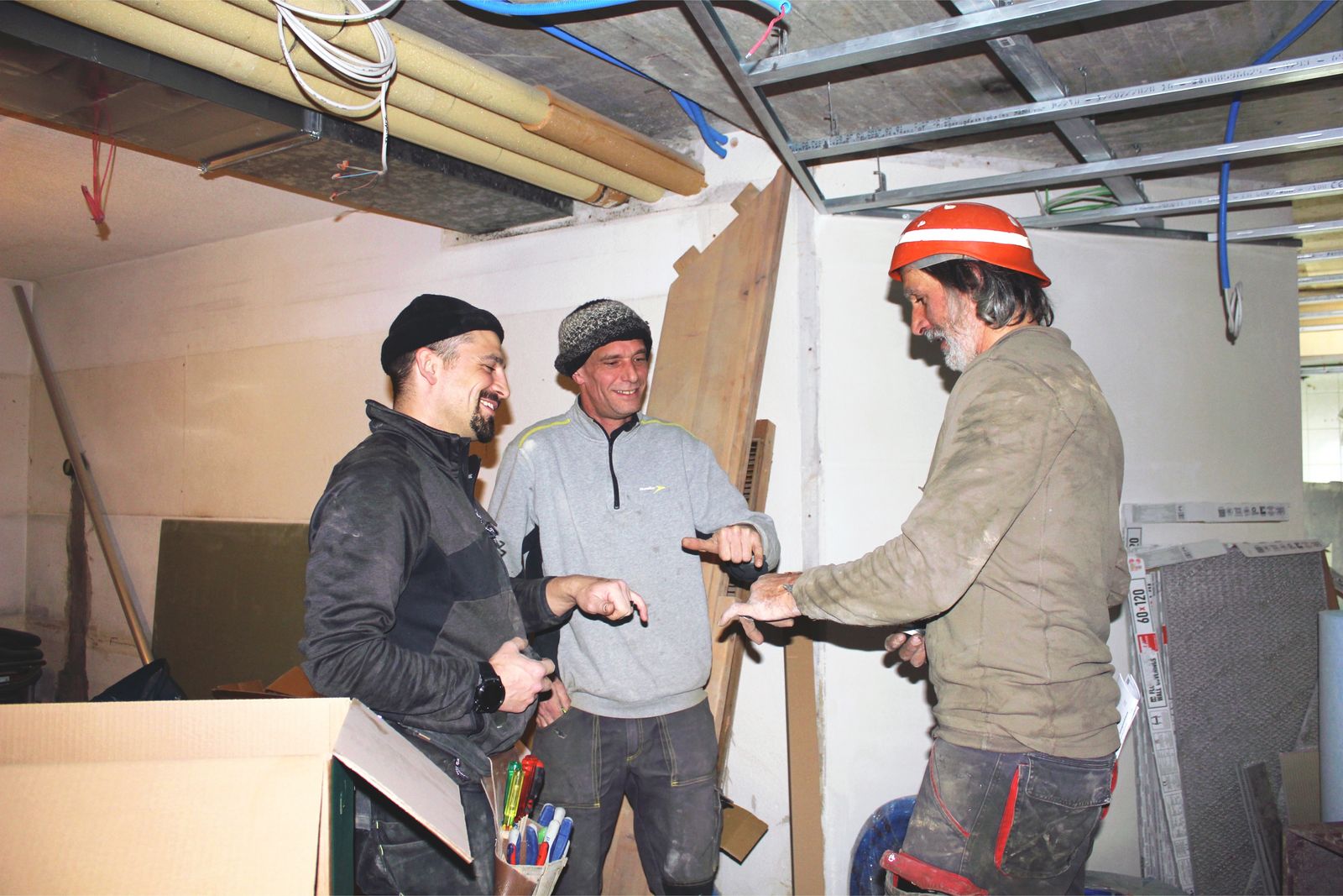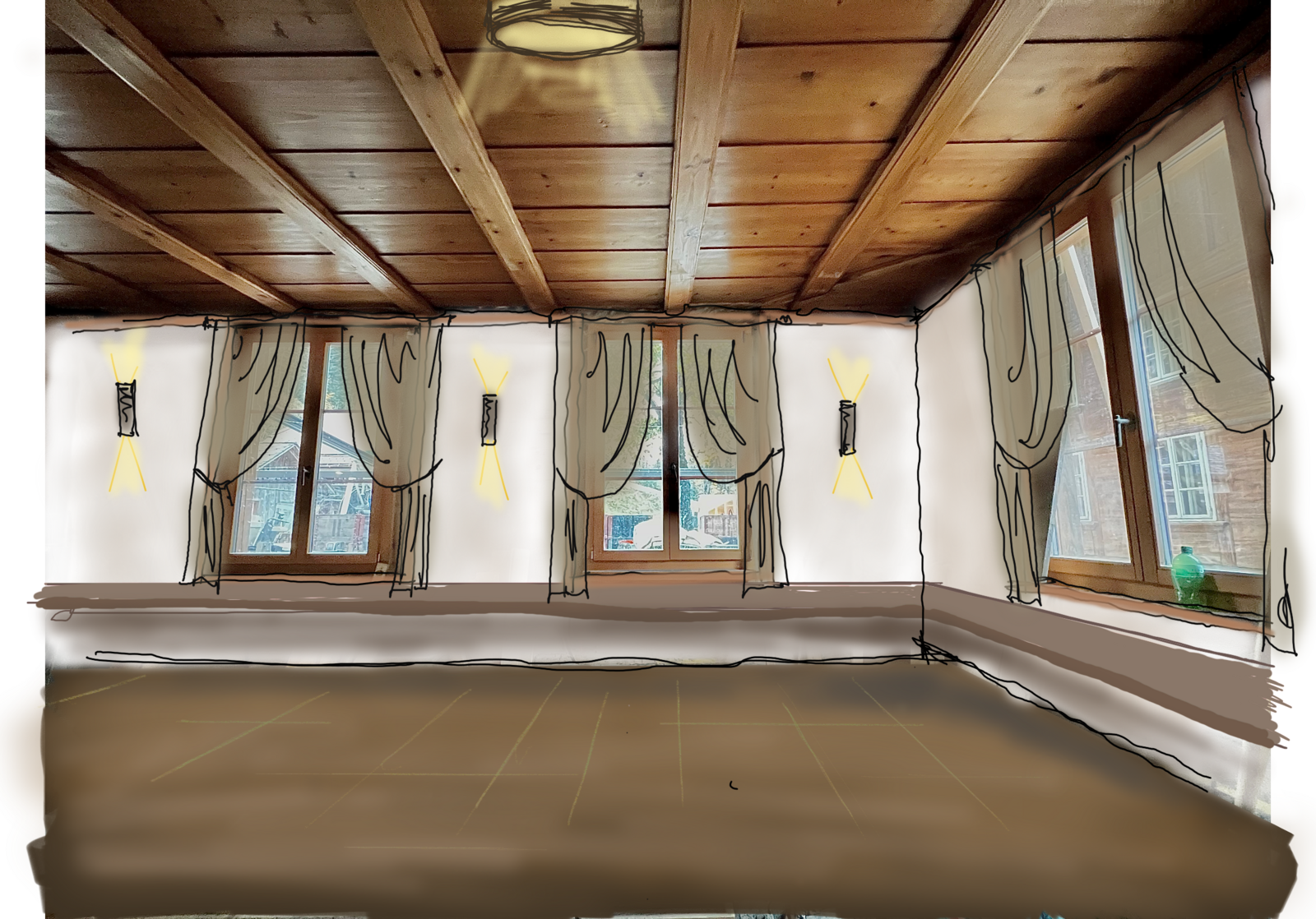 Die meisten Arbeiten fielen im Erdgeschoss, Untergeschoss und rund um das Haus an. Unterfangungen wurden gemacht, der Unterlagsboden gegossen, neue Fenster eingebaut, die Wände neu isoliert und auch die Technik erneuert. Neben der historischen Holzdecke im Bedlisaal, konnten wir auch die Decke und eine Holzwand in der Gaststube retten. Leider blieb sonst kaum etwas intakt.