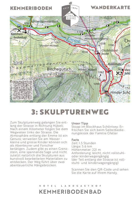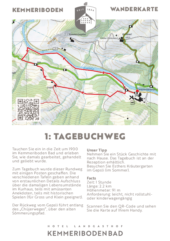 Entdecken Sie die wundervolle Bergwelt rund um das Kemmeriboden-Bad bei einer der Wanderungen. Hier finden Sie einen praktischen Faltprospekt zu jeder Tour. Gerne beraten wir Sie bei Fragen zu Anforderungen, Verhältnissen oder Eignung auch telefonisch. Wir freuen uns auf Ihren Anruf!